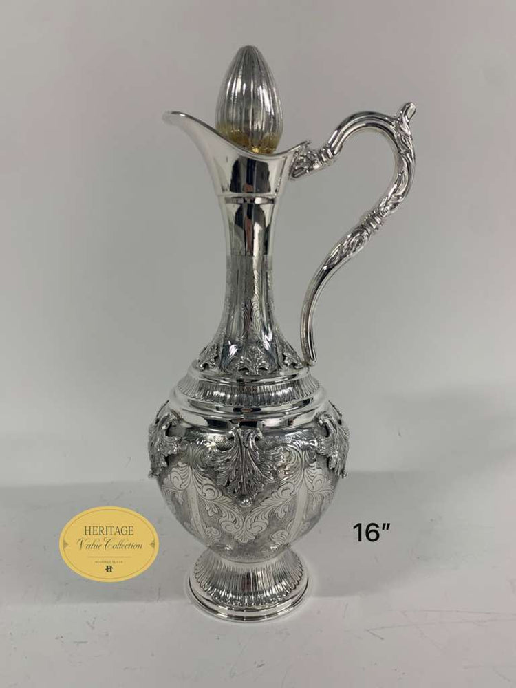 LARGE CHASED WINE PITCHER WITH TRAY